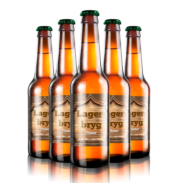 Klassisk trælook til klassisk kvalitetsbryg. Design din egen unikke øletiket med denne skabelon - Printet på professionel folie med aftagelig lim.